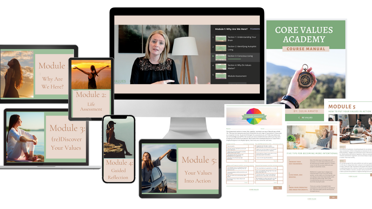 The Core Values Academy is a self-paced online course that helps you (re)discover your true core values—so you can live and lead with more clarity, confidence and connection to yourself and the people who matter most.